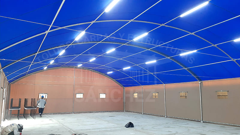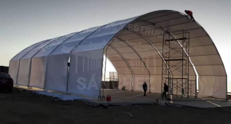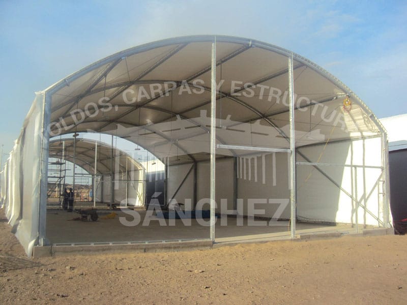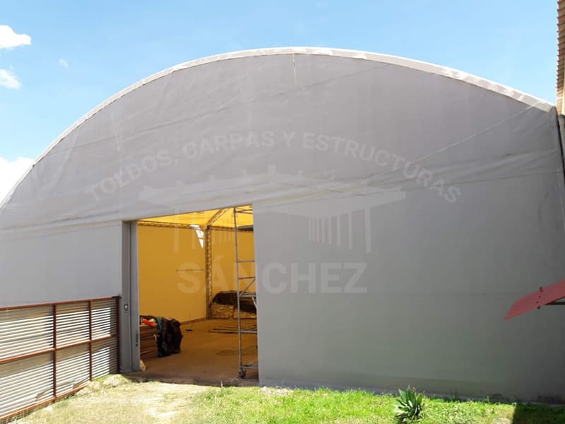 En Toldos y Estructuras Sánchez, nos especializamos en la construcción de almacenes con cobertura de lona, una solución práctica y eficiente para crear espacios de almacenamiento seguros y duraderos. Nuestras coberturas de lona están diseñadas para resistir condiciones climáticas adversas y ofrecer una protección sólida para tus mercancías, maquinaria o materiales.